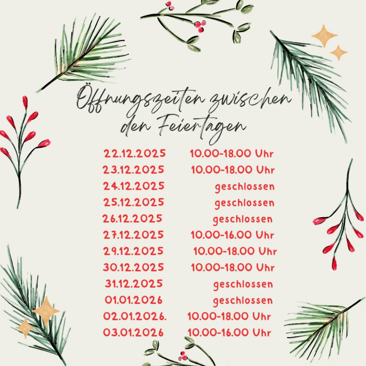 ÖFFNUNGSZEITEN HANNOVER